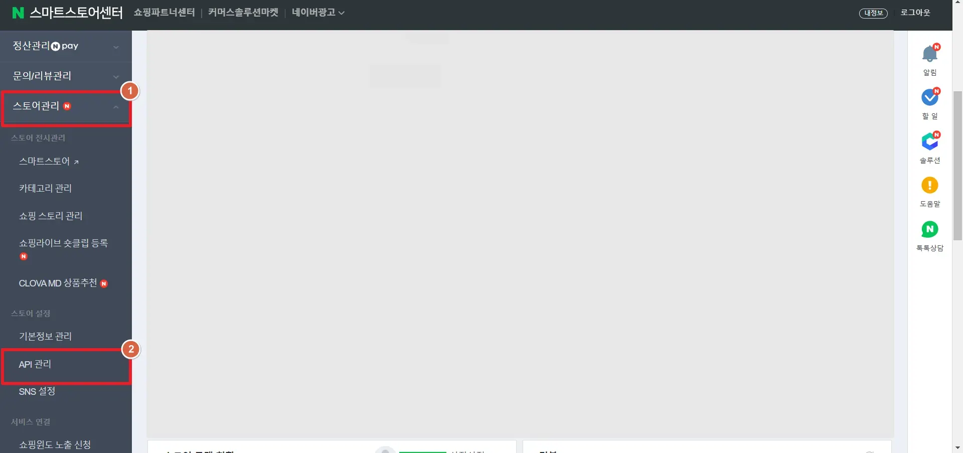 따라서 한 번도 상품을 등록한 적이 없는 스토어라면, 스마트스토어 판매자센터 사이트에서 직접 수동으로 1개의 상품을 등록하신 후에 아래의 방법에 따라 윈들리와 스마트스토어를 연결해 주세요.