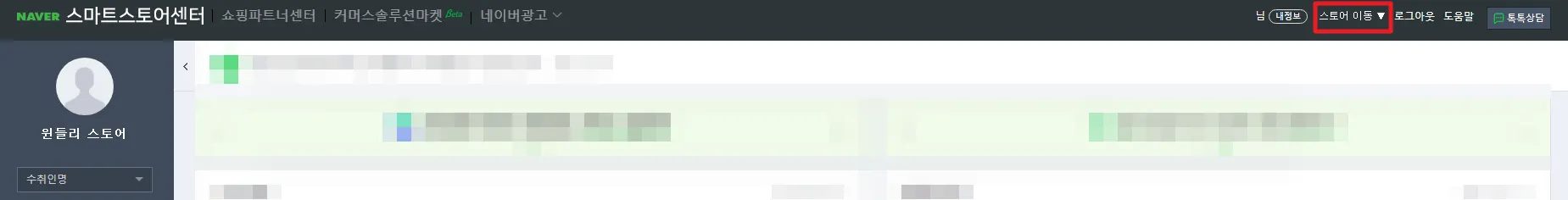 스마트스토어 판매자센터 사이트의 우측 상단 → 스토어 이동