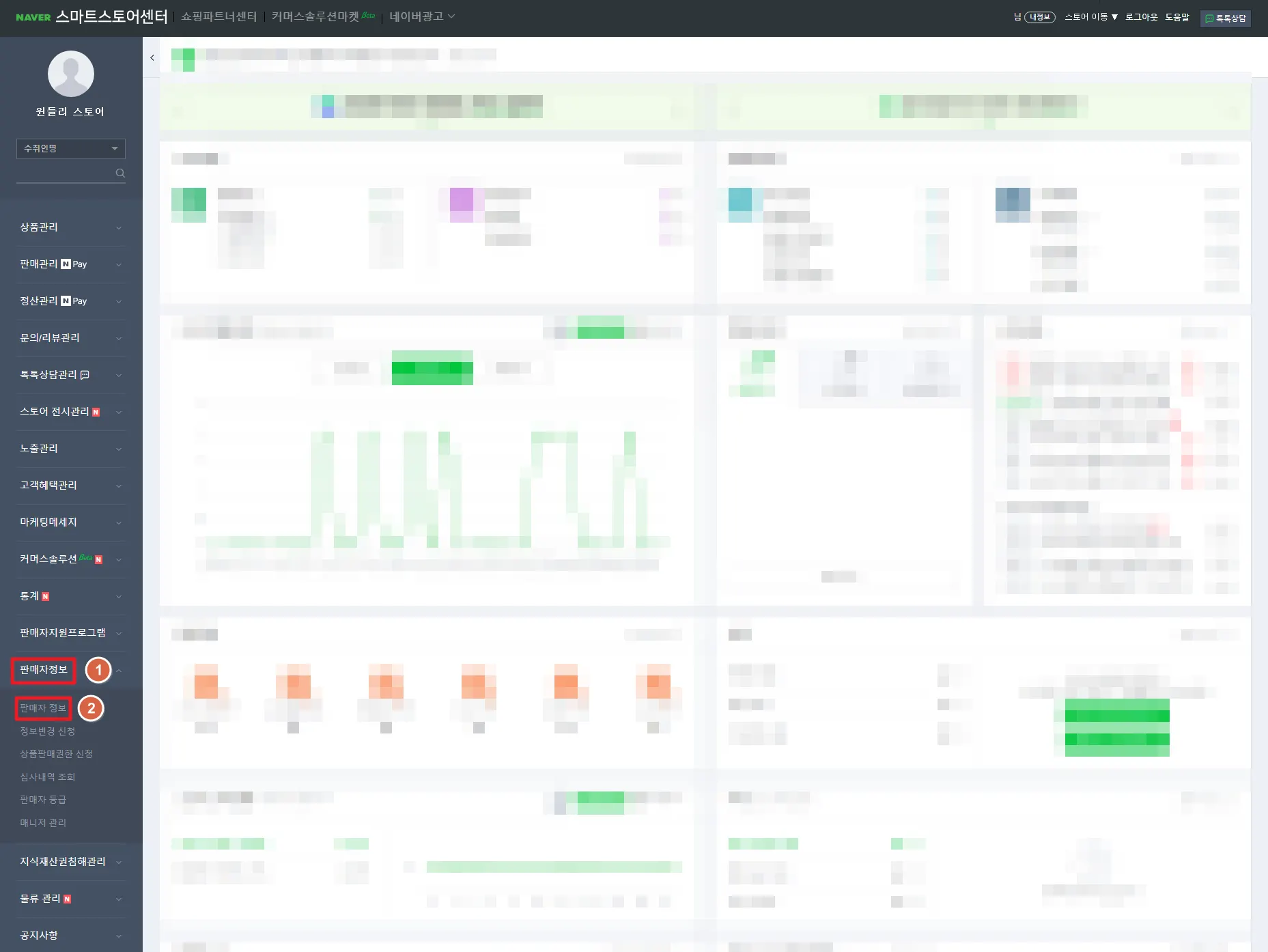 스마트스토어센터 좌측 메뉴 → 판매자 정보 → 판매자 정보 로 이동해 주세요.