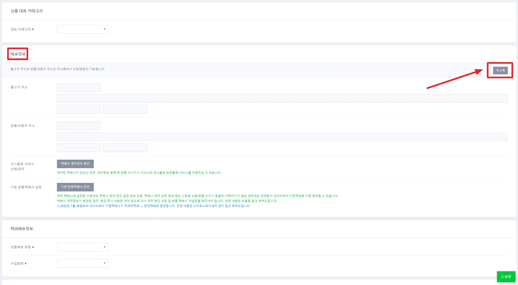 스마트스토어 판매자센터 → 국내 출고지/반품/교환지 등록