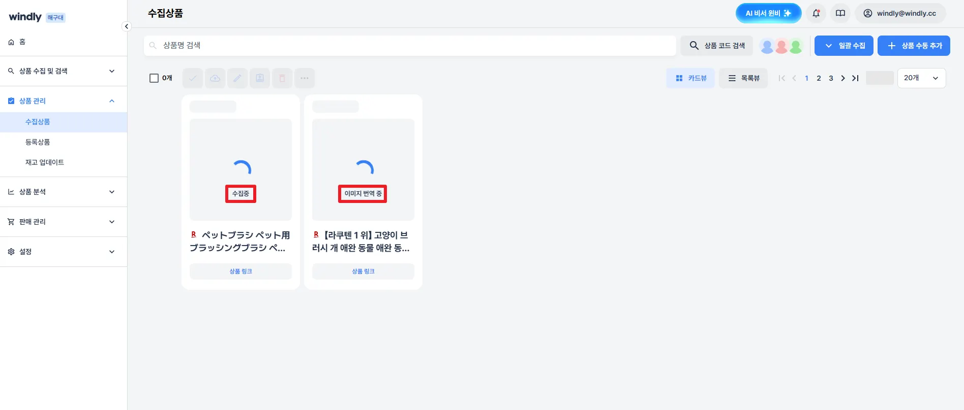 AI 이미지 선번역 기능 사용 시, 상품 수집 시간이 조금 더 걸릴 수 있어요. 상품 데이터를 가져와 수집을 진행한 뒤, 각 이미지별로 번역을 진행하는 데에 시간이 소요되니 잠시 기다려 주세요.