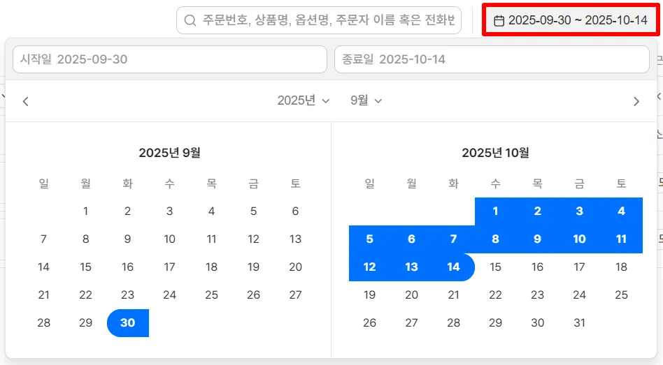 그렇지 않은 주문건들은 일부 정보가 보이지 않을 수 있습니다.