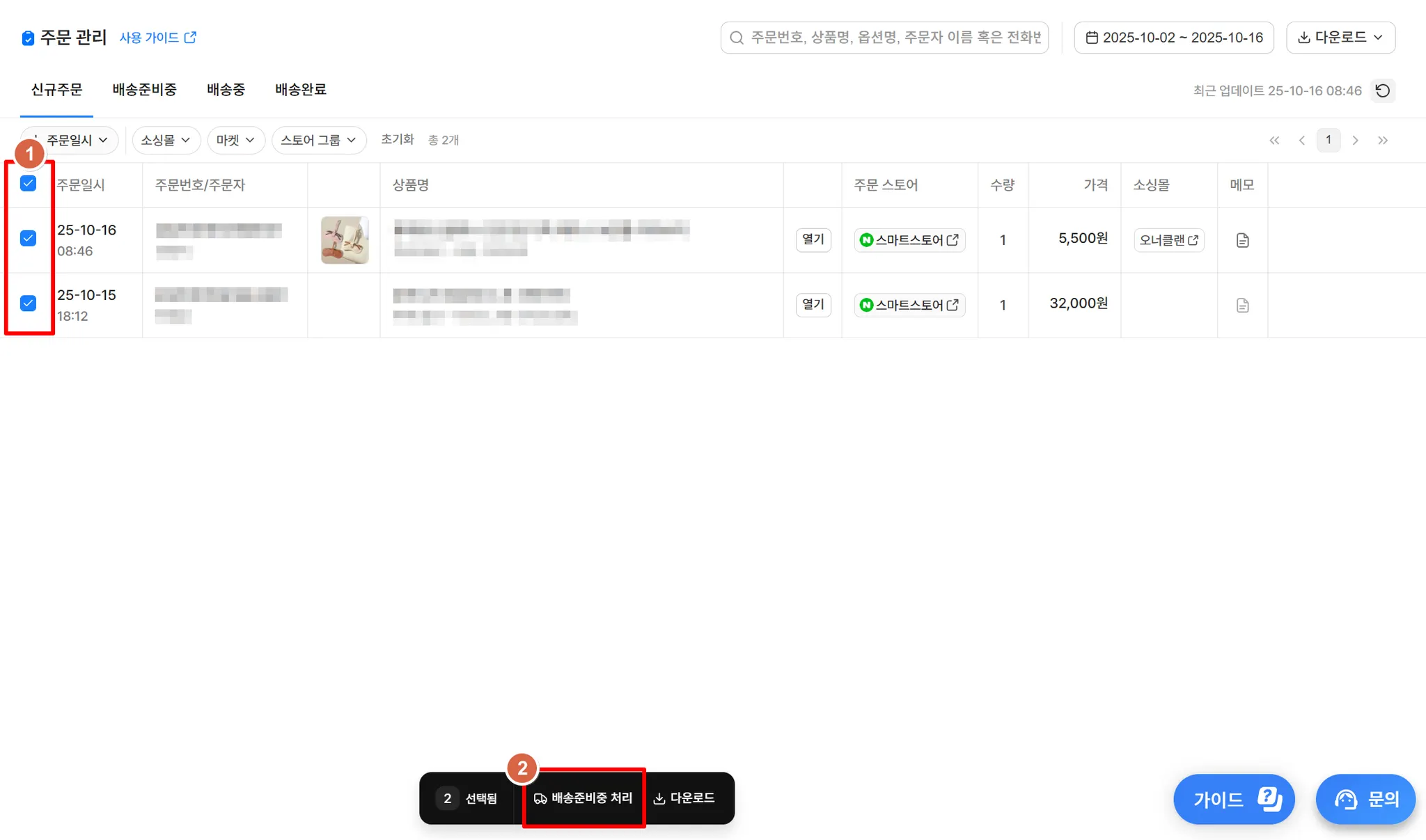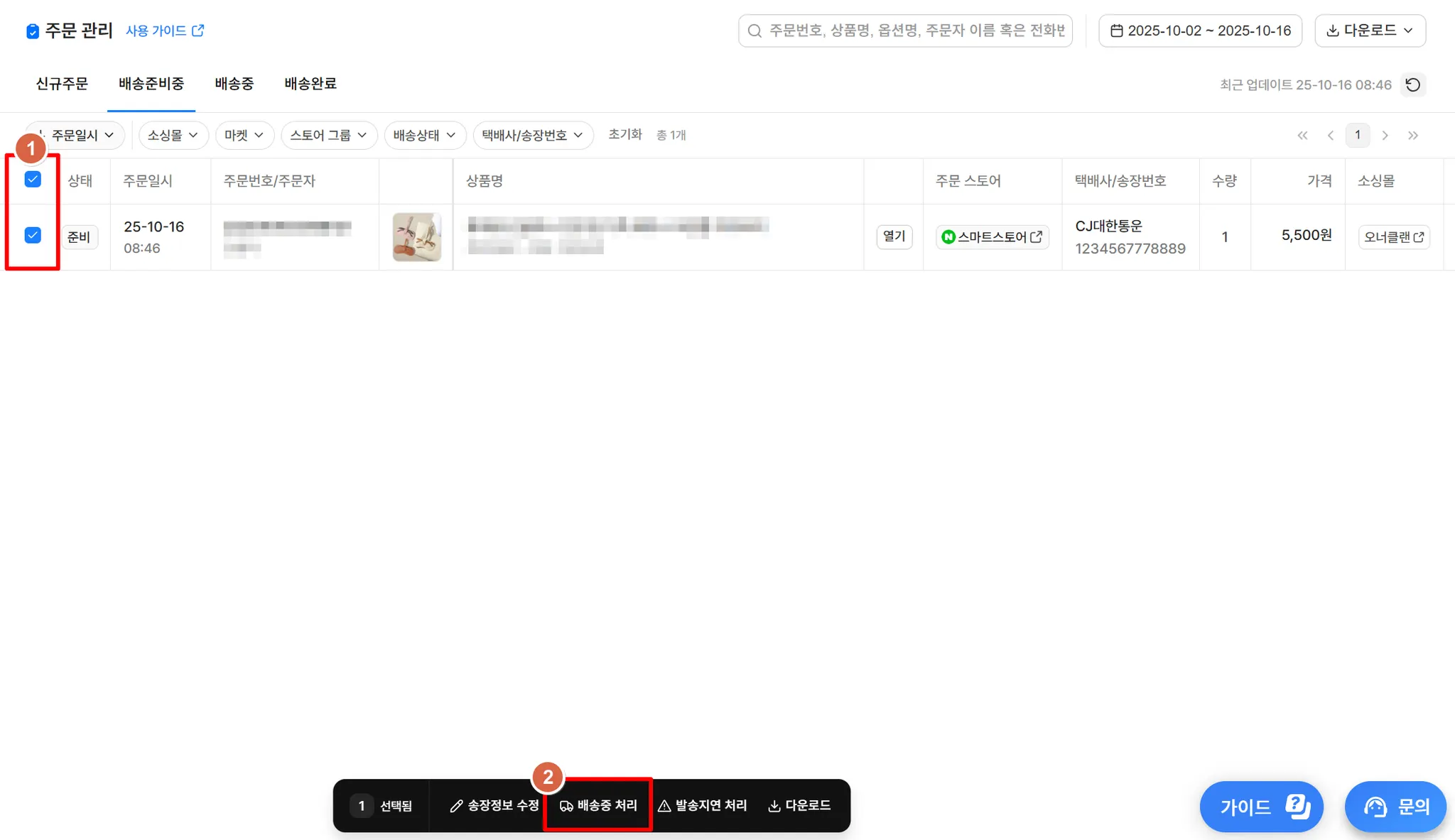 윈들리 주문관리 메뉴에서, 주문건의 상태를 변경할 수 있어요.