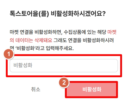 마켓 계정을 연결해둔 상태에서 해당 마켓의 사용 여부만 수정할 수 있어요.