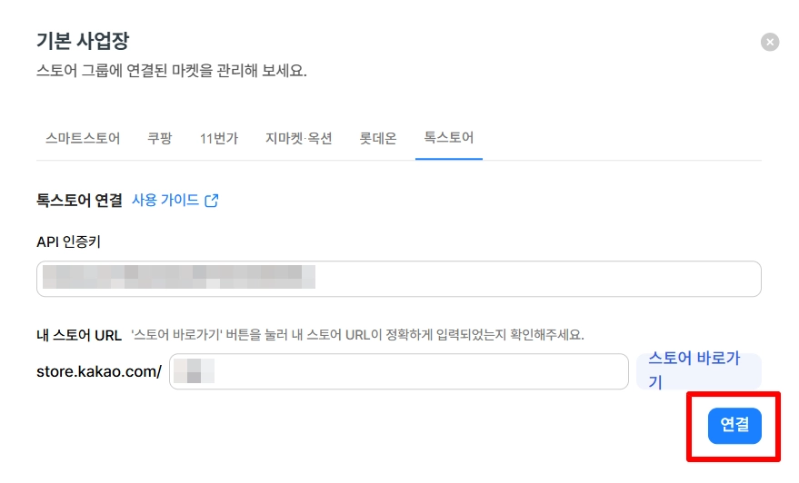 스토어 확인이 완료되었다면, 연결 버튼을 클릭해 주세요.