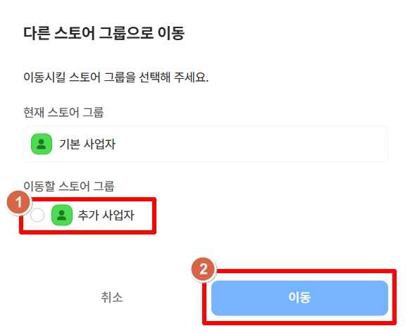 4) 다른 스토어 그룹으로 이동