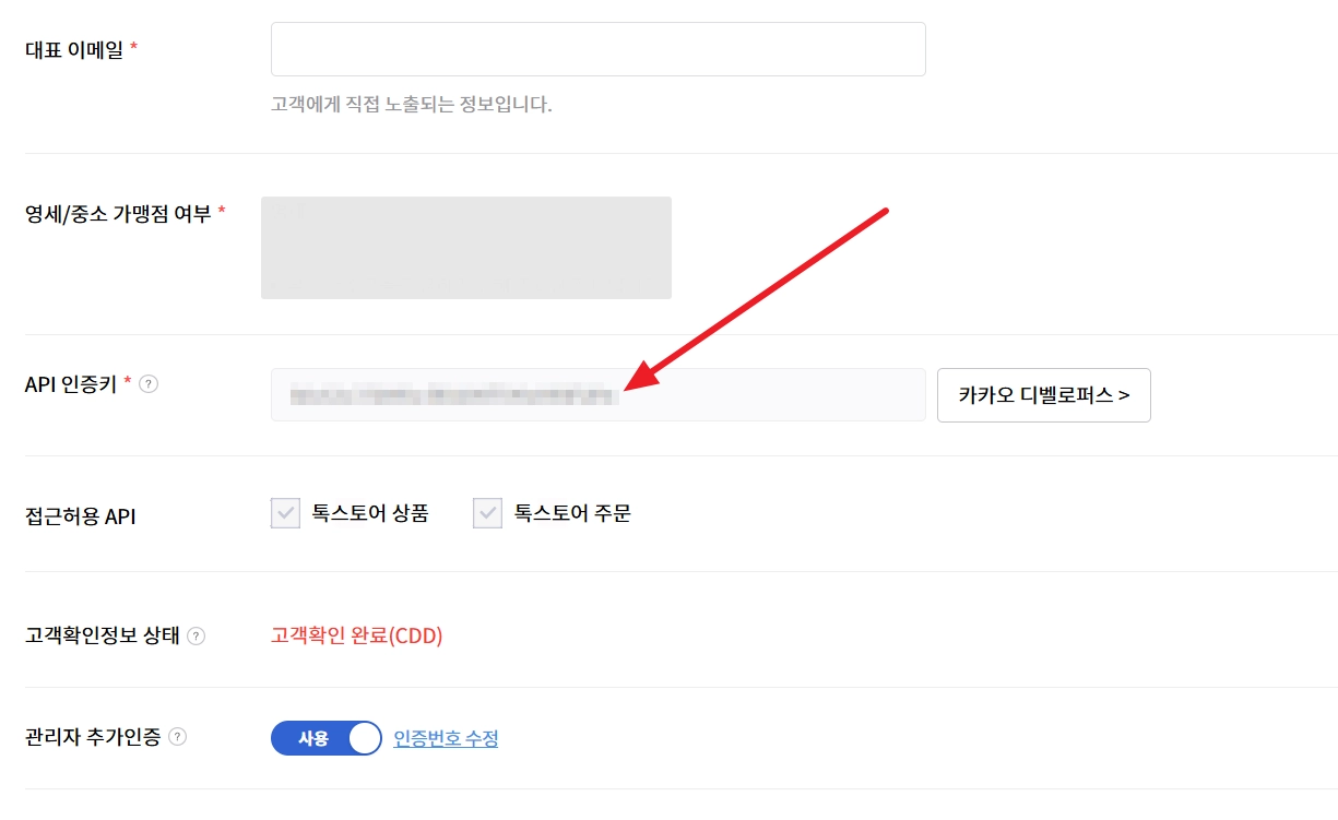톡스토어 API 키 발급받기