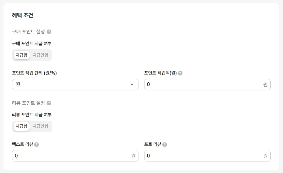 포인트를 지급하는 것으로 설정했다면, 포인트를 얼마나 적립할지도 설정해 주세요.