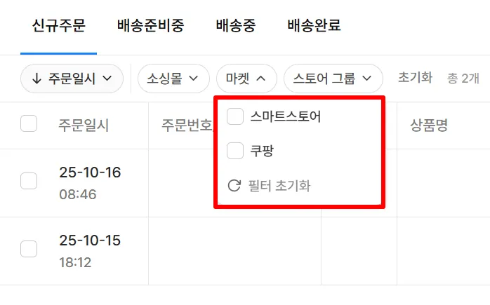 주문 데이터는 자동으로 업데이트 되지 않아요. 따라서, 업데이트된 주문 데이터 확인을 원하는 경우, 반드시 새로고침 아이콘을 클릭해주세요.