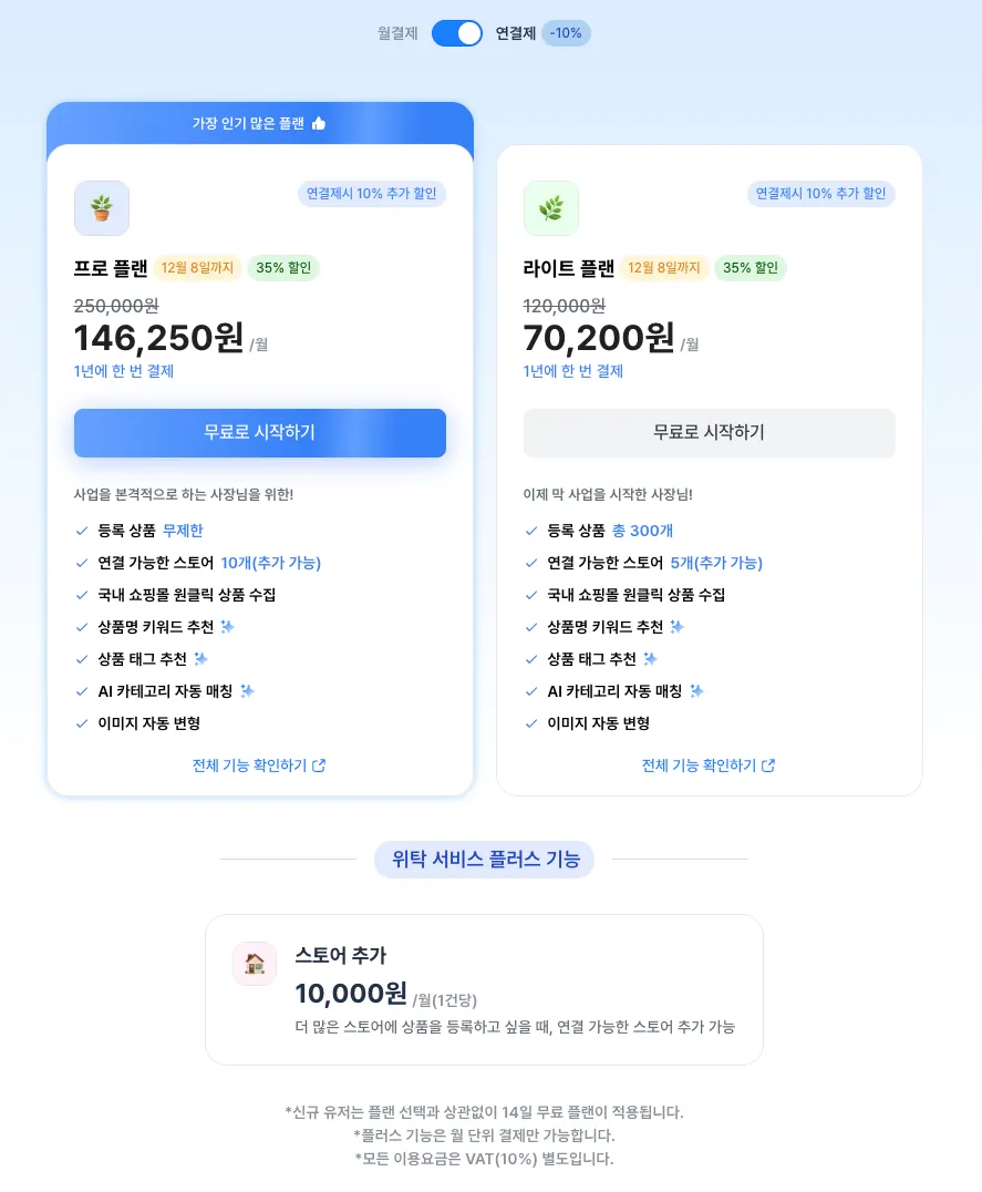 추가할 스토어 1개당 금액 : 10,000원(VAT 별도)