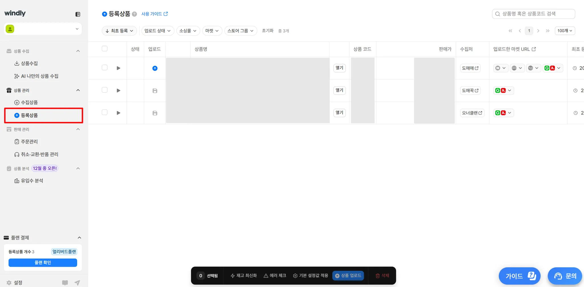 상품 업로드 상태와 최근 등록 일시를 확인할 수 있어요.